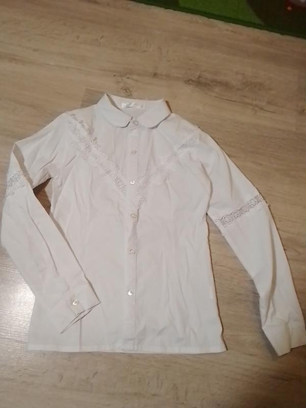 Блуза белая для девочки на рост 152 см. На рукавах и груди кружево ))) Замеры по запросу...