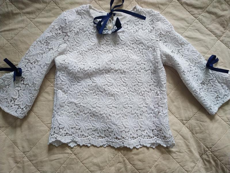 гарна мереживна блузка на 8-9 років, гарно поєднується із синьою спідничкою яка теж у наявності