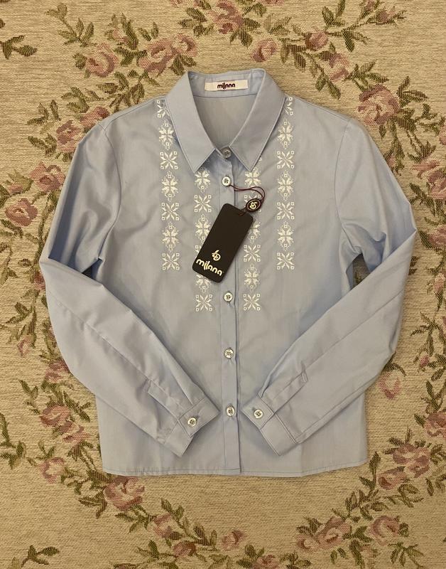 Блузка школьная, с красивой и нежной вышивкой. Совершенно новая, с этикеткой. Размер 134 Бренд Milana, Украина