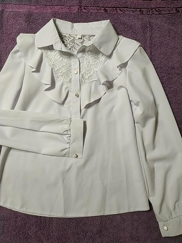 Красива біленька блузочка. На 146 .Довжина 52 см. Напівобєм 43 см. Рукав від плеча 54 см.