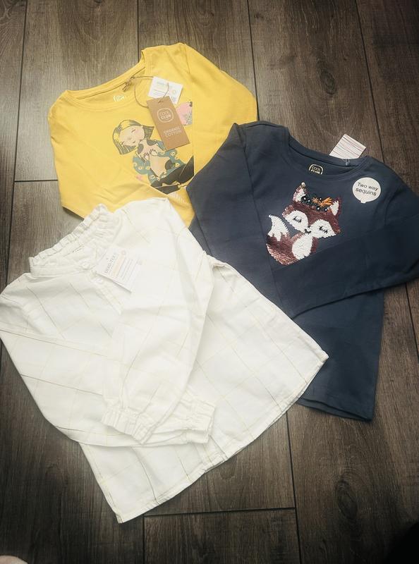 Кофточки для девочки Cool Club 1) кофточка с лисичкой из пайеток, которые меняют цвет, очень приятная на ощупь ткань, размер 104, цена 260 грн 2)кофточка желтого цвета с девочкой, размер 110, цена 200 грн 3) нарядная кофточка для девочки, размер 104. Цена 300 грн