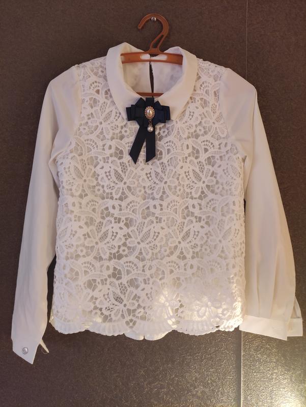 Блуза на девочку, на рост 152, возраст 9-11. Молочное, состояние идеальное. очень красивое кружево