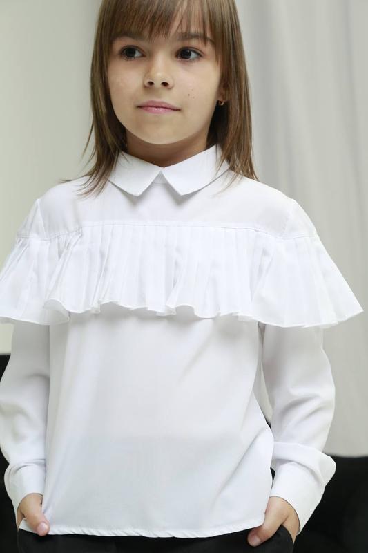арт:1004 Размеры в наличии: 122; 128; 134; 146; 152 Тканина: софт Декорирована воланом плиссе Цвет: белый Застежка: петля/гудзик по спинке 🔹 Замеры : плечи/ обхват по подмышку / рукав от плеча / длина по спинке Рост 122: 31/ 71/ 44/ 42 Рост 128: 32/ 72/ 47/ 43 Рост 134: 33/ 74/ 49/ 46 Рост 140: 34/ 77/ 52/ 48❌ Рост 146: 35/ 80/ 55/ 50 Рост 152: 37/ 82/ 57/ 52 Рост 158: 38/ 84/ 58/ 54❌