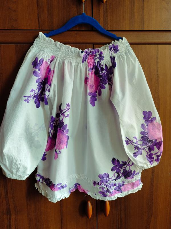 Розмір 122-128 на вік 6-8 років. Довжина 44, ширина 43, рукав 37. Ворот і рукав на резинці