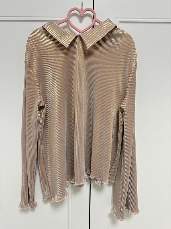 Очень красивая и оригинальная блузка украинского производителя. Один рукав шире другого. Ткань переливается. Сзади застегивается на пуговицу. Подойдет на 9,10,11 лет. Стан идеален, одета несколько раз на праздники в школе.