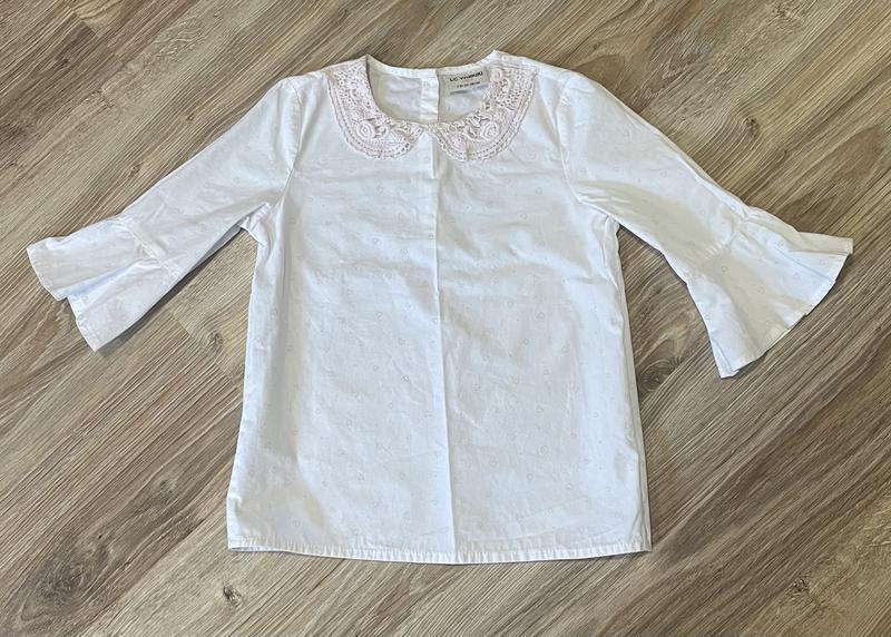 Блузка из хлопка принтована сердочками. Рукав 3/4. Размер на бирке 7-8 лет (122-128 см) Длина 46 см, объем груди 72 см, длина рукава 30 см. Стан идеально
