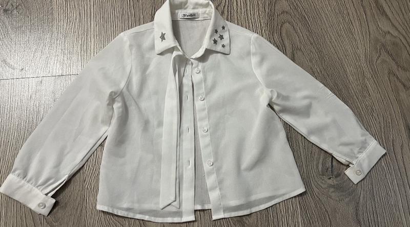 Качественная, белая блуза с серебристыми звездочками на 2-4 года