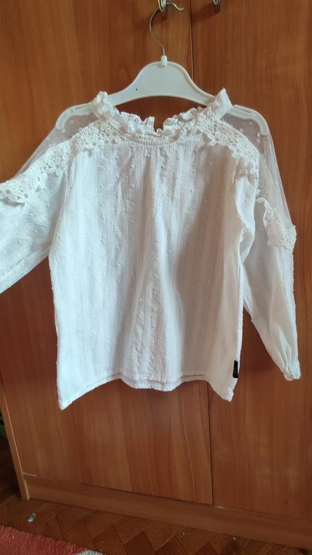 Очень классная блузка белого цвета. Оригинальные перчатки. На теле лучше смотрится, чем на фото) Длина 41, рукав от шеи 41.