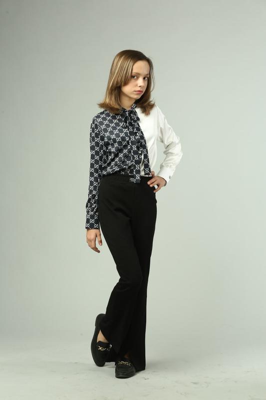 Блузка "Бренд" чорно-біла ціна 695 грн Відправка із фабрики м.Миколаїв тканина: шовк Армані Бездоганна якість! ВИМІРИ: р.128 довжина/рукав від плеча/пог 53/47/38см р.134 довжина/рукав від плеча/пог 55/49/39см р.140 довжина/рукав від плеча/пог 57/52/41см р.146 довжина/рукав від плеча/пог 59/53/43см р.152 довжина/рукав від плеча/пог 60/55/44см р.158 довжина/рукав від плеча/пог 62/58/46см р.164 довжина/рукав від плеча/пог 64/60/49см ВЛАСНЕ ВИРОБНИЦТВО!