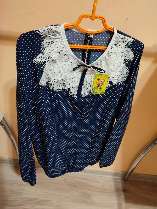 є дуже класні блузи для ваших дівчаток,дуже маленькі, приємні до тіла гарної якості,на манжетах резинка і по талії ,горловина має гудзики , брошку з бантиком можна відстігнути,маломірять дивіться на заміри заміри Зріст 122; обх.-36см,рукав-40см,довж-43см Зріст 128 обх.-36,5см,рукав-42,5см,довж-43см Зріст 152 обх.-42см,рукав-51см,довж-50см Зріст. 158 обх.-43см,рукав-54см,довж.-53см Зріст. 164 обх.-44см,рукав-55см,довж-54см