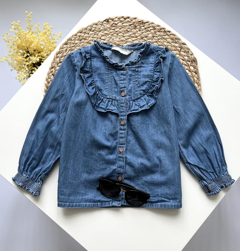 🔝Джинсова блузочка Primark🌿 🔸2/3 роки (зріст 98) 🔸Стан - ідеал ▪️Довжина - 40, груди - 31, рукав від плеча - 35