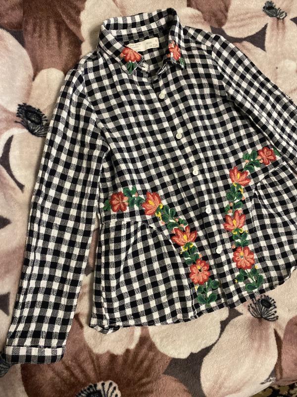 В отличном состоянии.на 4/6 лет, с вышитыми цветами, в клетку.Вказано размер 116,трохи маломерит