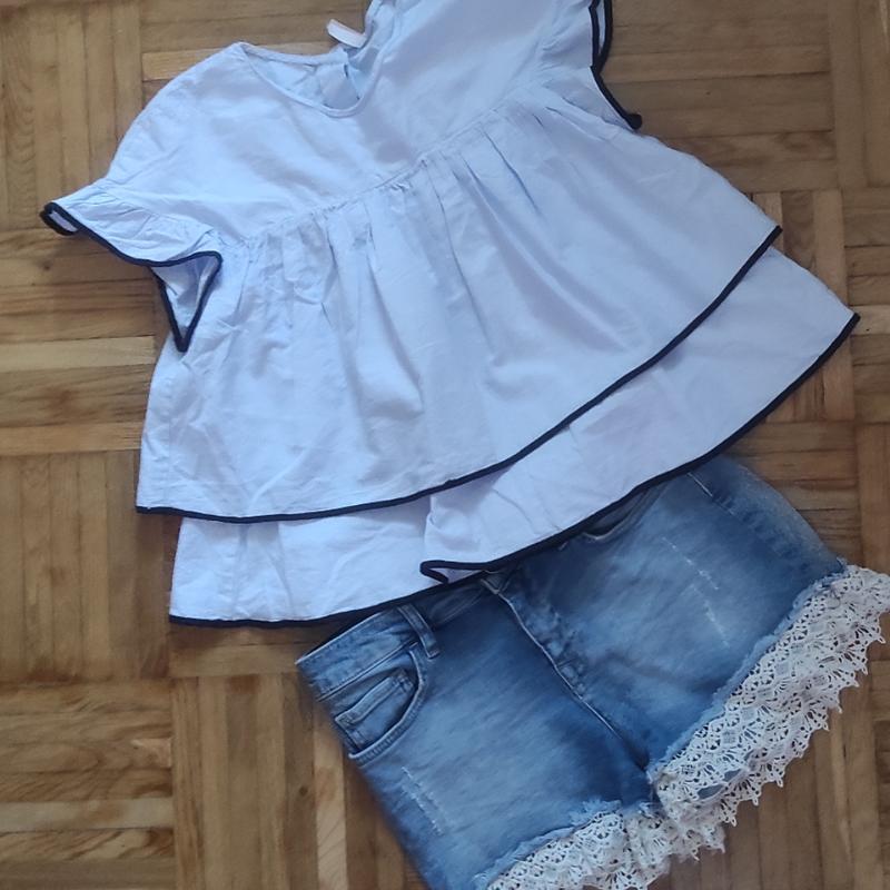 Блуза zara с рукавами крылышками, длина 53 см, ПОГ 40 см, Шорты джинсовые дрвжина 30 см, ПОТ 39 см, ПОБ 45 см, ткань тянется -200 Стоимость за блузу