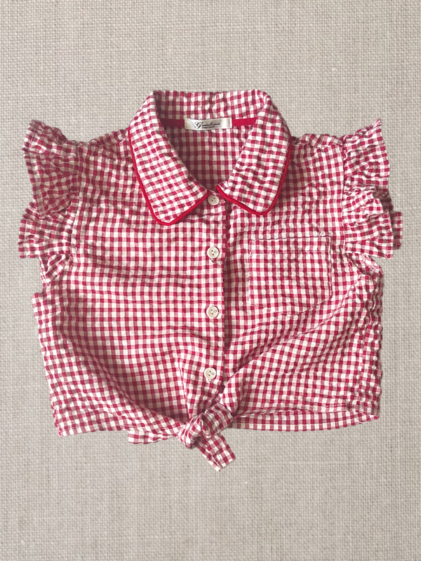 Топ, вантажна укорочена рубашка Gaialuna, р. 34 Будет на рост 130-140 см. Есть пятночка на месте, где завязки, при завязанных не видно! Выводить не пробовала. Замеры: по 36 см, длина 30 см.