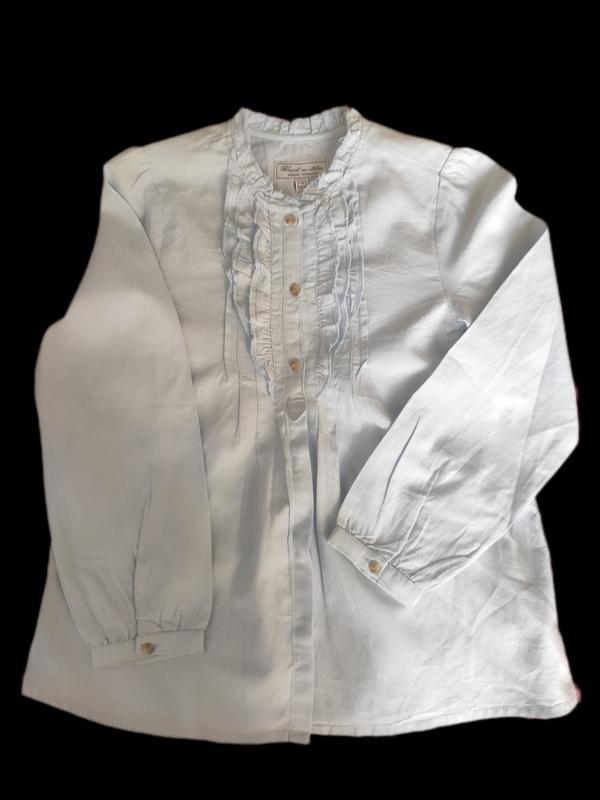 Блуза нежно-голубого цвета из 100% хлопка испанского бренда Mayoral станет незаменимой для школы или мероприятий, требующих делового стиля. Вещь имеет дефект, который убирается стиркой.