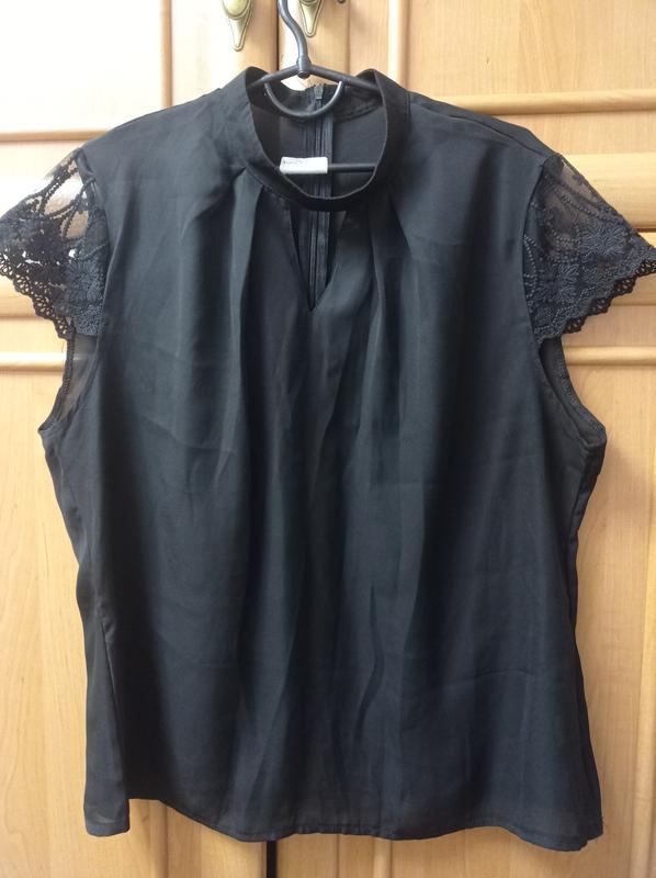 Шифонова стильна блуза з сексуальним розрізиком спереду. Рукавчики гіпюрові з візерунком. Не жарка, трішечки просвічується. Колір чорний. Дуже гарно виглядає у поєднанні з білою спідничкою. На ОГ 118-120