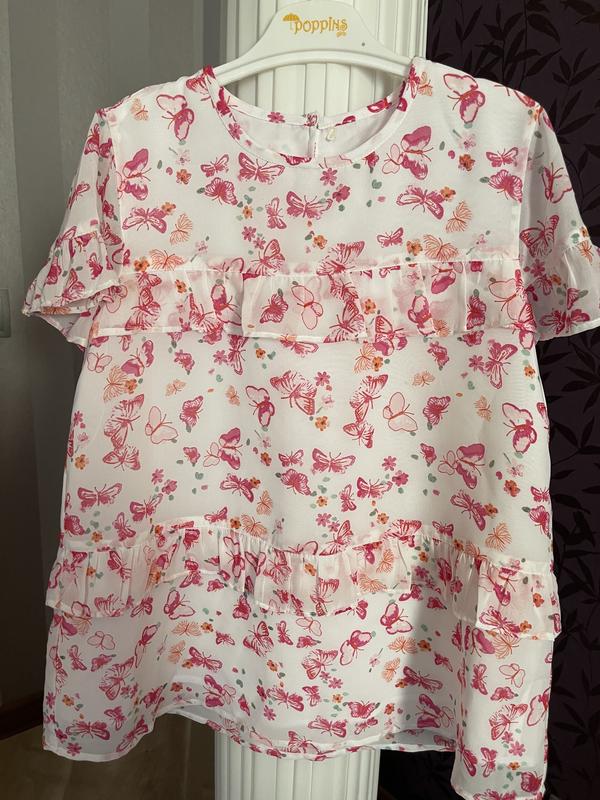 Блуза на дівчинку відомого бренду George. Ззаду застібка на ґудзику . Розмір вказаний 11-12 років . Стан нової . Легка і виглядає ефектно 💕