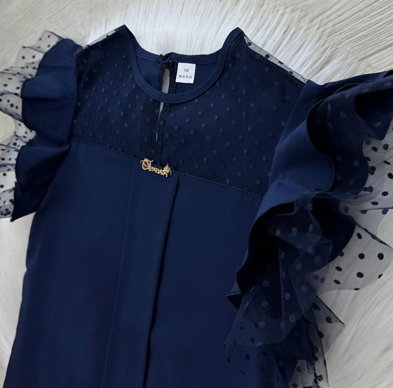Стильная легкая блуза с эффектными перчатками 🦋😍🦋 На спинке пуговица✔ Спереди сеточка 🤩 Металева нашивочка 😉 Тканина: SUPER SOFT ❤️ Производитель: Украина 🇺🇦 Синяя р.158-1шт ЗАМІРИ ⤵ ▪️р.140- длина от плеча 45см/ ПОГ 35см ▪️р.146- длина от плеча 47см/ ПОГ 36см ▪️р.158- длина от плеча 51см/ ПОГ 40см ▪️р.164- длина от плеча 54см/ ПОГ 41см