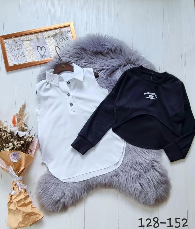 Стильный комплект для девочки блуза из софта Кофта из трикотажа в рубчик КАЧЕСТВО ЧУДОВА!!! РЕКОМЕНДУЮ!!! 128)-длина блузы 55,пог 39,длина кофты по переду 26,длина кофты сзади 42,пог 39,рукав от горловины 56 134)-длина блузы 59,пог 41,длина кофты по переду 27, длина кофты сзади 44, пог 40,рукав от горловины 57