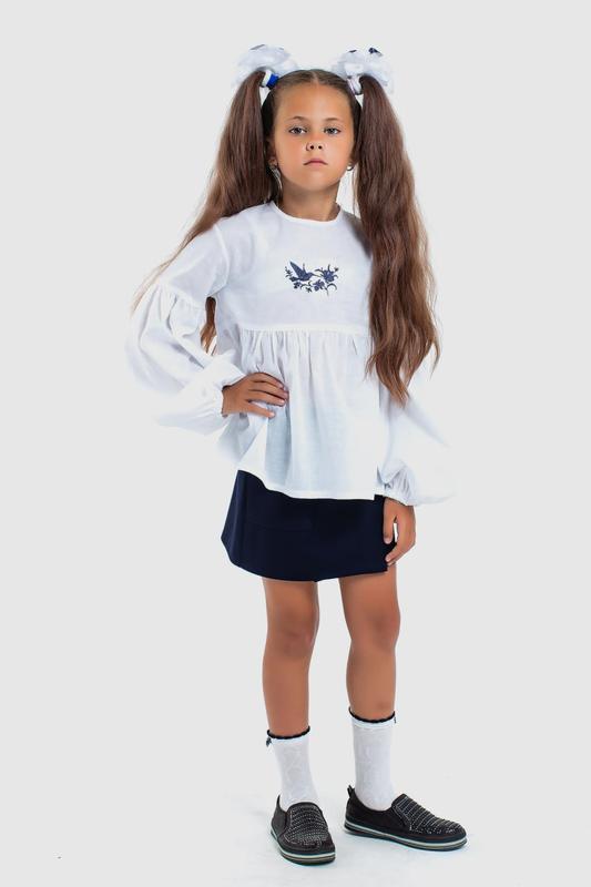 Блузка детская Качество шикарное! Натуральная хлопчатобумажная ткань, легкая и неощутимая на теле На груди вышивка Очень хороший длинный рукав, который по желанию можно носить и 3/4 Рост: 116/122, 128/134 (ориентировочно от 6 до 9 лет)