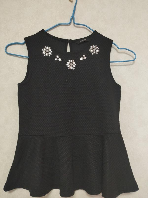 Черная стильная блузка без рукавов на девочку 9-11 лет.