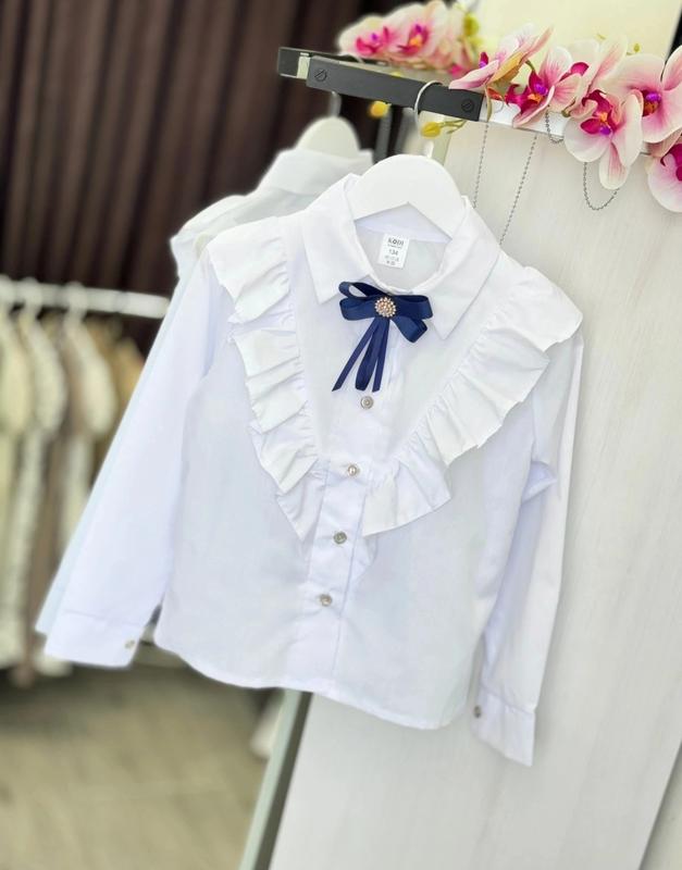 Школьная рубашка для красавиц Склад сорочкова тканина хб, натуральна, не парить длинный рукав, брошь в комплекте замеры: длина/пог/рукав 128р-46/37/47 134р-48/39/48 140р-49/41/50 146р-50/42/52 152р-51/42/54 +-2см М