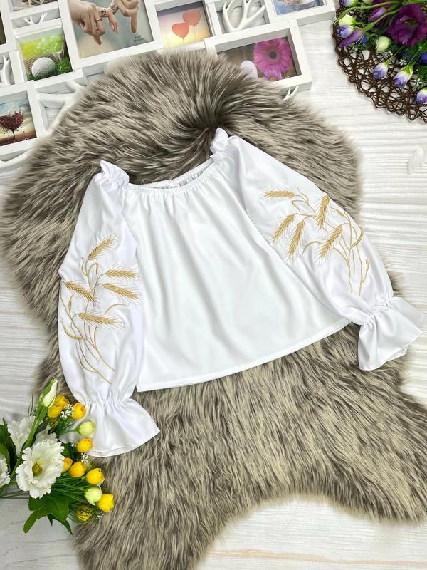 💙💛 Нежная блуза для девочек💗 свободного кроя, подойдет на любую фигуру, ткань софт диагональ на рукавах вышивка костяшки Замеры: длина / пог / кофе от горловины 116 - 37/38/47