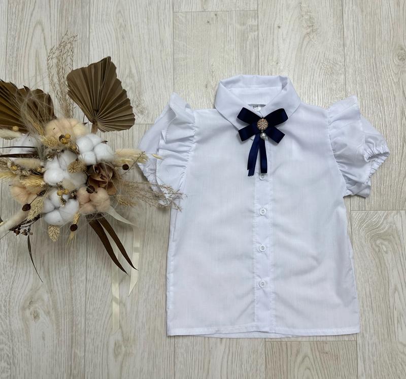 Блуза с синей брошью застегивается на пуговицы легкая натуральная ткань коттон, брошка в комплекті КАЧЕСТВО ЧУДОВА!! РЕКОМЕНДУЮ!!! 134-1шт 140-1шт 146-1шт долж блузы/пог 116 - 42/33 122 - 43/35 128 - 45/36 134 - 46/36 140 - 48/37 146 - 50/39