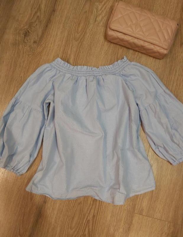 Рубашка девчачья стильная голубая в мелкой горошек.На 10-11 лет.