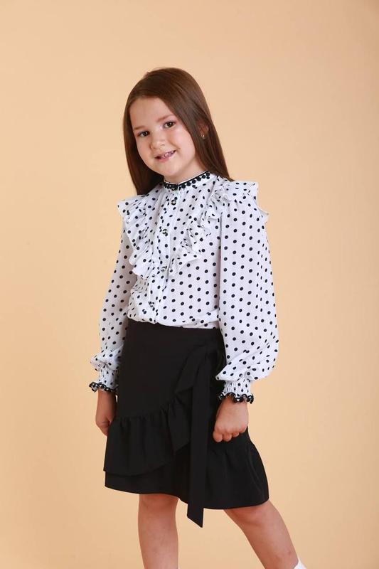блузка Орохи Стоимость 700 факультета арт: 1172 Застібка: планка на гудзиках; манжет на резиночках; мережево Горох темно синий (почти черный) Тканина: софт Ростовка : 122-152 Замеры: плечи/ рукав от плеча/ ОГ/ длина Рост 122: 30/ 49/ 70/ 46 Рост 128: 31/ 51/ 72/ 47 Рост 134: 32/ 53/ 76/ 48 Рост 140: 32,5/ 55/ 78/ 49 Рост 146: 34/ 57/ 80/ 51 Рост 152: 35/ 61/ 85/ 56 ОТПРАВКА С ФАБРИКИ!
