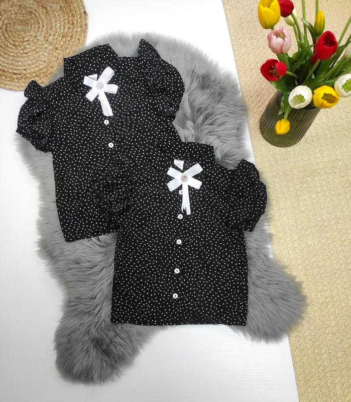 🧡В наличии🧡 Стильная блузка тканина котон застегивается на пуговицы брошка в комплекті БРОШКА БІЛОГО КОЛЬОРУ замеры:длина/погрудей 116-42/33 122-43/35 128-45/36 134-46/36 140-48/37 146-50/39 +-2см