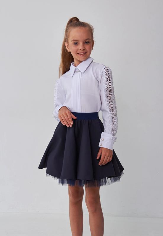 Нежная блузочка По всей длине рукава вставка кружева. Застегивается по спинке на пуговицы по всей длине. Тканина - супер софт. Цвет - белый. Замеры: 116 - длина - 45см, полуобхват груди - 37см, рукав от плеча - 39см. 122 - длина - 46см, полуобхват груди - 38см, рукав от плеча - 40см. 128 - длина - 47см, полуобхват груди - 40см, рукав от плеча - 43см Артмодняшки.