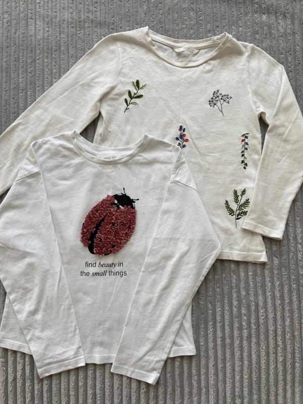Интересны, оригинальные регланы с вышивкой и аппликацией. Приятный на ощупь, натуральный трикотаж. С солнышком - белоснежный, Длина 43см Рукав от горловины 51см С листочками - молочный цвет, Длина 44,5см Рукав 41см Ширина под рукавами 34см Цена указана за 1шт, прикупки обеих ступи — 280грн.