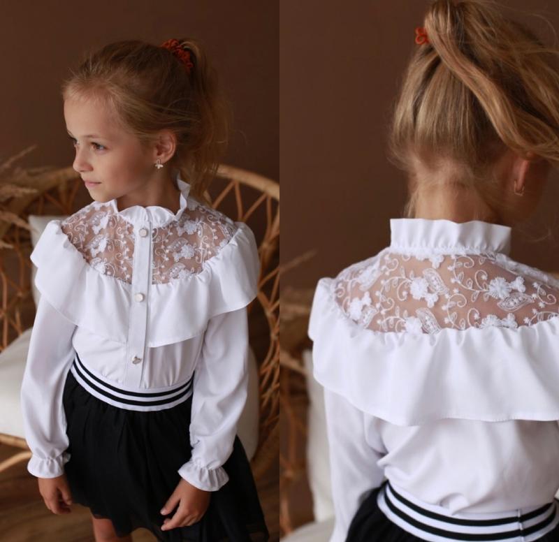 Школьная блузочка тканина софт украшена красивым кружевом Рекомендую!!! 🎈116(7 шт)-длина блузы- 38,длина рукава от плеча-40, пог-32 🎈140(6 шт)-длина блузы- 49,длина рукава от плеча -49,пог-38 +-1 см Греб