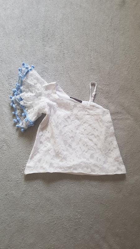 Красивая кружевная блузка в отличном состоянии. По бірці на 3-4роки. Моя дочь носила в 1 классе. Смотрите замеры