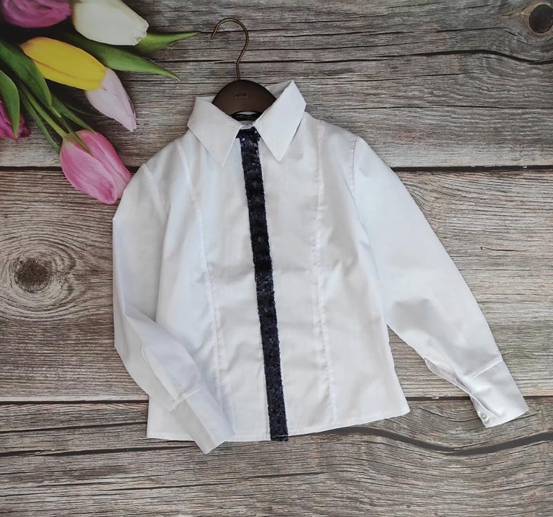 Школьная рубашка ткань х/б застегивается на пуговки украшено пайетками замеры:длина/рукав/п********** 128-44/43/35 134-46/46/36 140-48/48/37 146-49/50/38 122-продано 128-продано 134-продано 140-1шт 146-продано