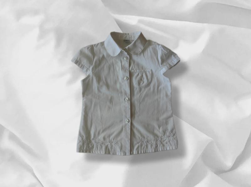 🐻 Шкільна класна блуза на короткий рукавчик. Оздоблена вишивкою. Круглий актуальний комірчик.