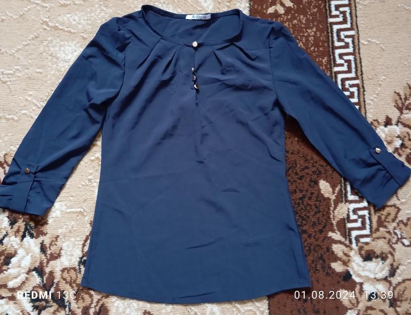 Блузка на девочку. Замеры: длина -- 58см, обхват -- 40см, рукав -- 45см.