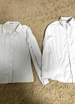 Рубашки и блузки 1 рубашка унисекс от М&S, на возраст 10-11 лет, состояние идеальное, можно надевать под жилетку для девочки или просто как рубашку для мальчика Блузка с надписями на рукавах на рост 152, состояние идеальное, на пуговицах стразики Цена за 1 шт 120 грн