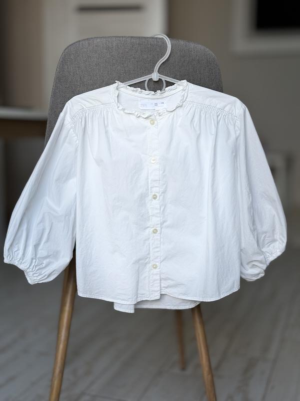 Блузка свободного кроя, рукава-фонарики. 100% бавовна Как новая, одетая 1 раз. Маломерит на 104 Недостатчик на 3 фото, был с самого начала, не выводится, в носке малозаметен.