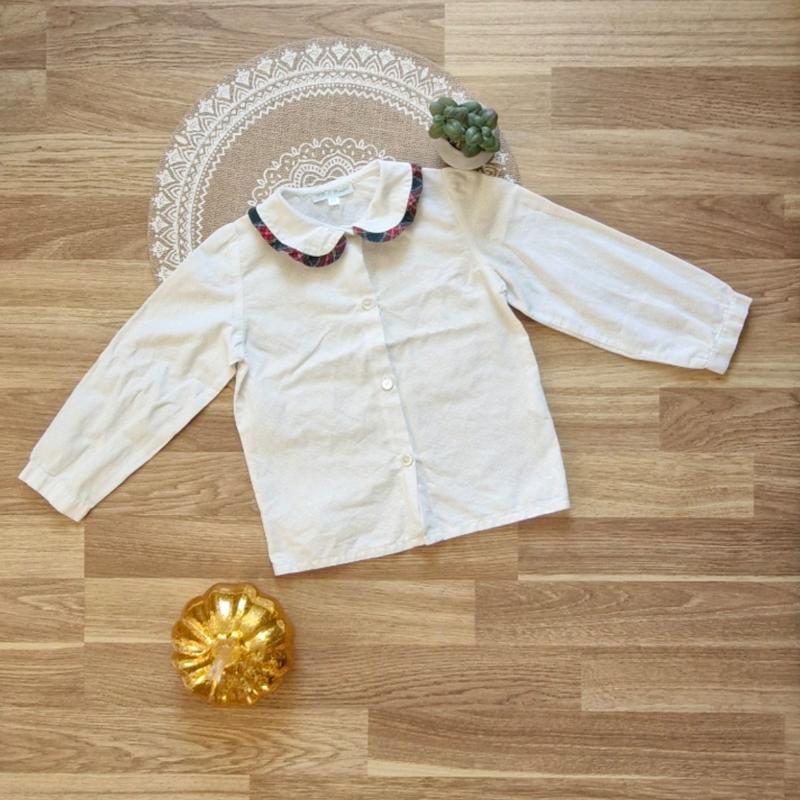 Нереально стильная, нарядная, закалённая блуза! 😍 Подойдет под все! ❤️🔥 Легкая, натуральная, с хорошим воротничком, в идеальном состоянии!👌🤩 На 2- 3 рочки, 92- 98 см . Длина 37 см Ширина (полуобхват) 30 см Рукав от плеча 32,5 см Плечи 22 см Заходите ко мне на страницу, имею в наличии очень много крутых вещей для малышей и взрослых. 🤗Отводя на все вопросы, выполняю точные замеры, и дополнительные фото ⚘️