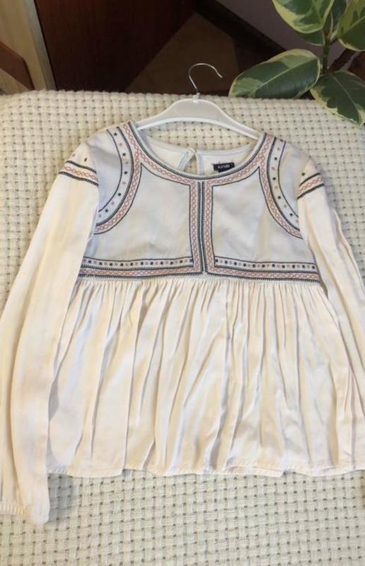 Красива блузка в хорошому стані,на рукаві має нюанс(жовта пляма)в носці майже не помітна. Довжина 42 см, ширина під руками 35 см,рукав від плеча 45 см.Колір швидше молочний,аніж білий.