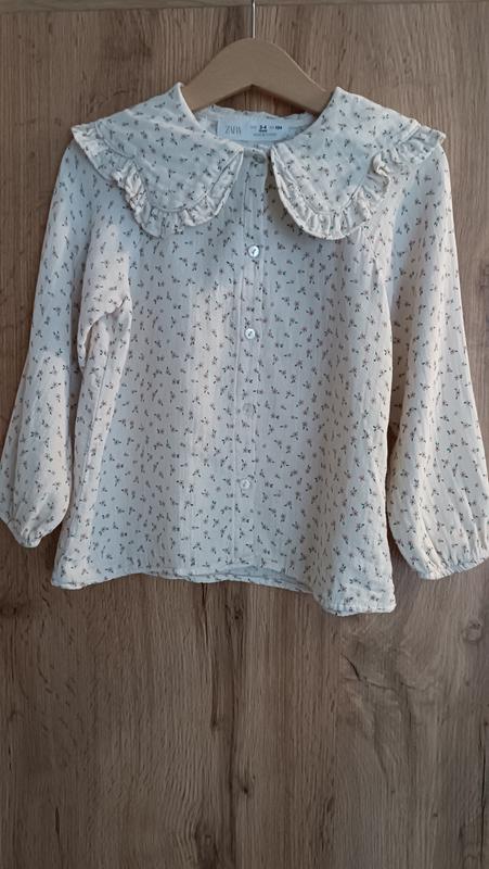 Блузка з круглим воротніком від Zara.Розмір 3-4 роки.Довжина 37см.Рукав від шиї 42 см ПОГ 32см.