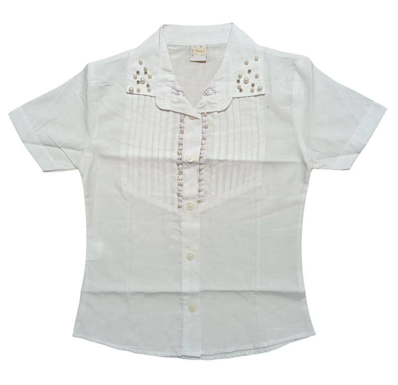 Блузка белая с бусинками. Материал - 100% хлопок. Производитель - "Atabay", Турция. 6-7 лет/рост 116-122: длина - 46 см., ширина (грудь/талия/низ) - 34/32/36 см., плечи - 30 см., рукав - 15 см. 9 лет/рост 134: длина - 52 см., ширина (грудь/талия/низ) - 38/35/39 см., плечи - 33 см., рукав - 15 см. 11-12 лет/рост 146-152: длина - 57 см., ширина (грудь/талия/низ) - 39/37/42 см., плечи - 34 см., рукав - 15 см.