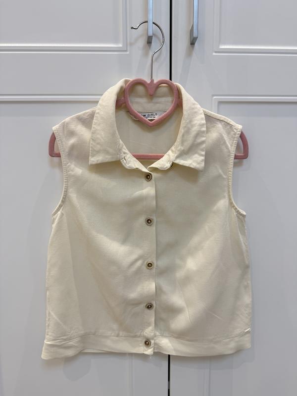 Блуза, рубашка, топ молочного кольору. Ідеальний стан. Віскоза 85%. Розмір 134-140. Довжина 43 см. Груди 35.