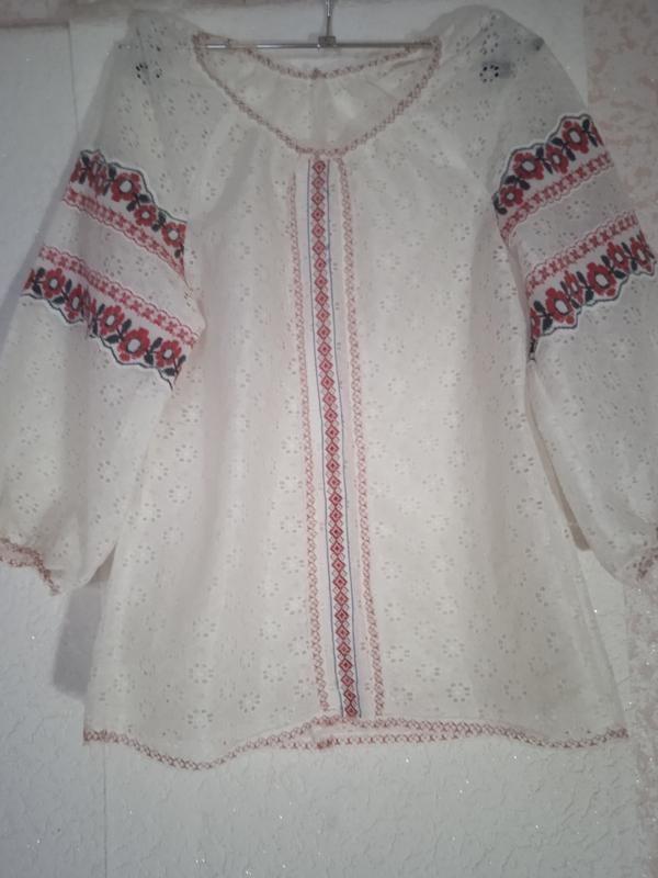 блузка стилизована под вышиванку. замеры длина от плеча до низа 60 см, рукав реглан 3/4 длина от горловины 52 см. полуобхват под руками 42 см.