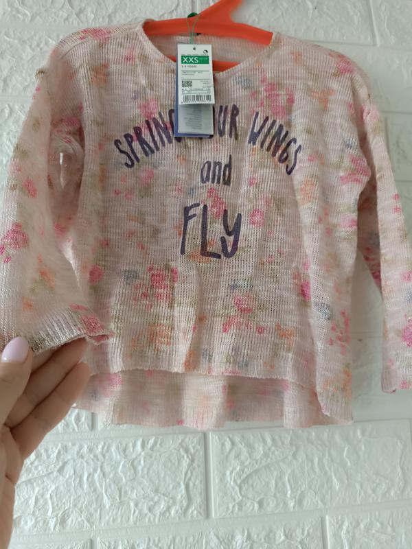 дуже гарна кофтинка на маленьку дівчинку, тоненька в'язка, довжина попереду 32 довжина позаду 39, п/грудей 37, плечі 38, рукав 25.