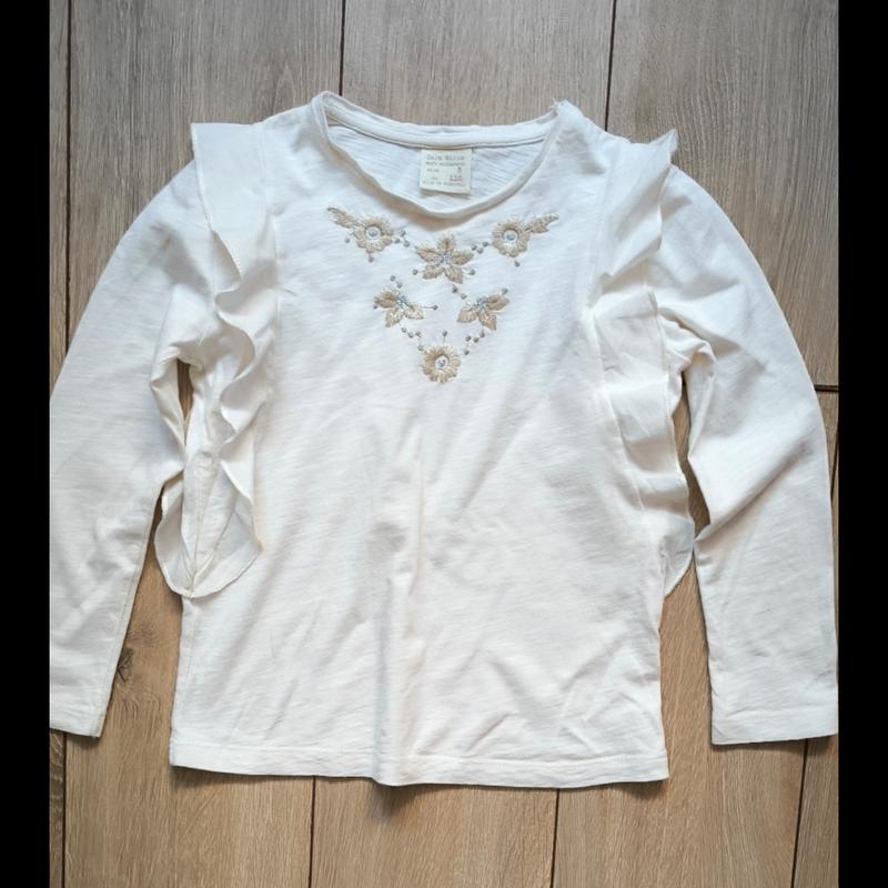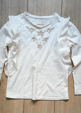 красивая легкая блузка для девочки украшена вышитыми цветами цвет айвори
