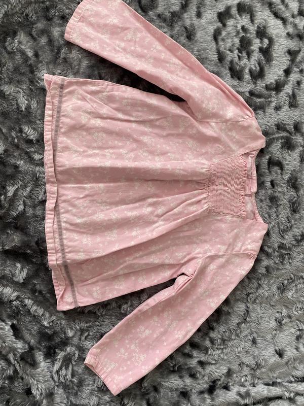 🌸 Ніжна дитяча блузочка рожевого кольору з довгим рукавом. 🌸Має легкий квітковий візерунок, зібраний верх на резиночці та вільний низ. 🌸Матеріал приємний до тіла, підійде для щоденного носіння чи святкових образів. Розмір: 18-24 міс.