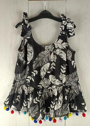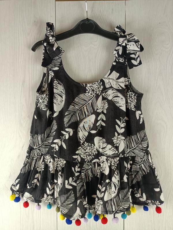 Яркая, легкая блузочка для девочки 9 лет с индийским принтом и помпонами. Идеальное на лето - стильная, удобная и очень приятная к телу. 🌿 Материал: 100% вискоза — мягкая, воздушная, не парит 🖤 Цвет: черный с бело-кремовым ботаническим принтом 🎀 Модель: блузка без рукавов, на завязках на плечах 🎉 Декор: разноцветные помпоны по низу - добавляют веселого настроения 📍 Произведено: в Индии 📏 Размер: на 9 лет (ориентировочно 134 см) ✅ Замеры (в спокойном состоянии, без растягивания): Длина по спинке: 48 см Ширина под подмышками: 36 см (полуобхват) Длина от плеча до талии: 31 см Ширина по талии: 37 см Возможна погрешность 1-2 см через ручное измерение. 💬 Пишите — с удовольствием дам дополнительные фото или информацию. 🛍️ Смотрите другие объявления – есть еще много качественной детской одежды!